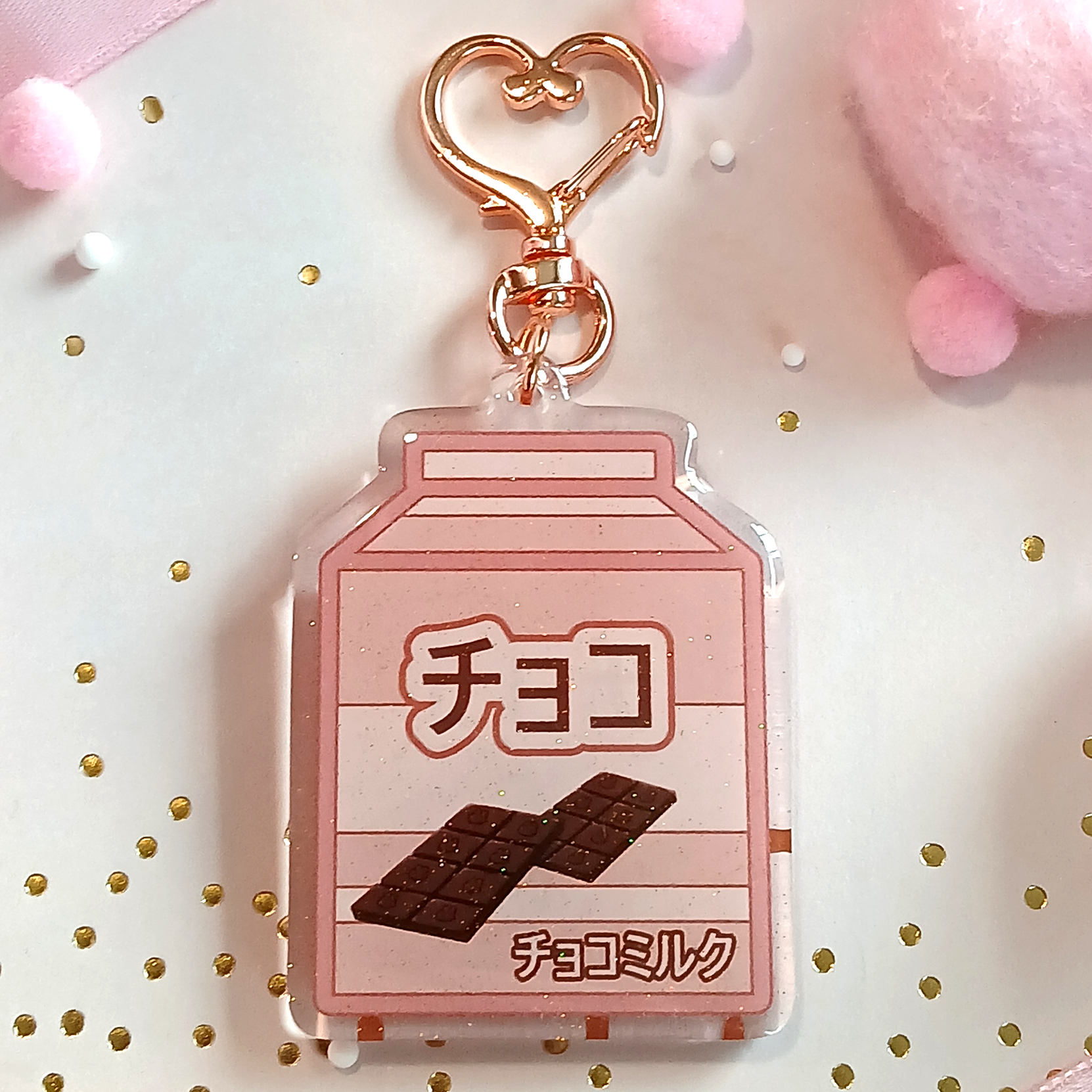 Kawaii Chocolate Milk Carton - Glitter Keychain Charm
