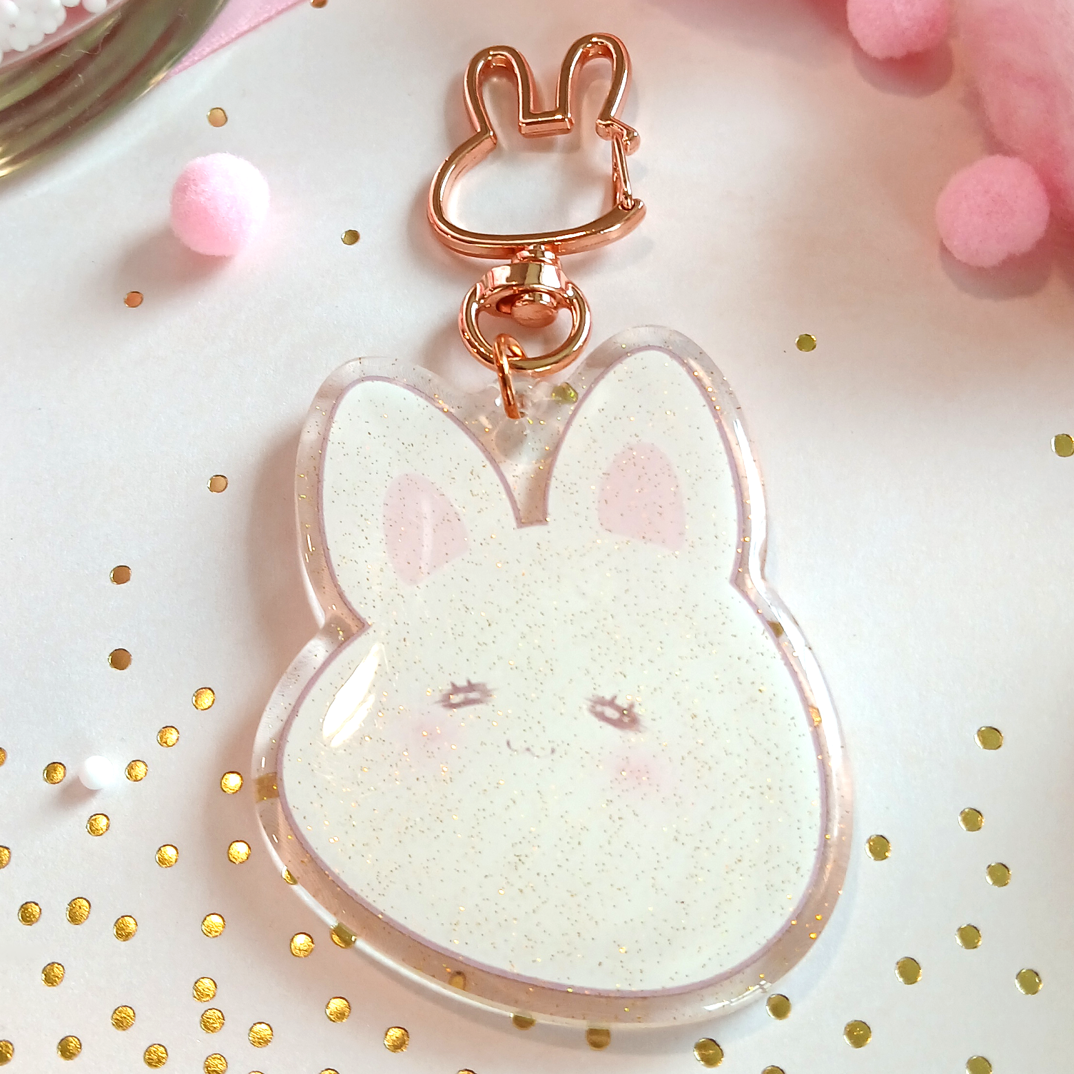 Kawaii Bunny - Glitter Keychain Charm