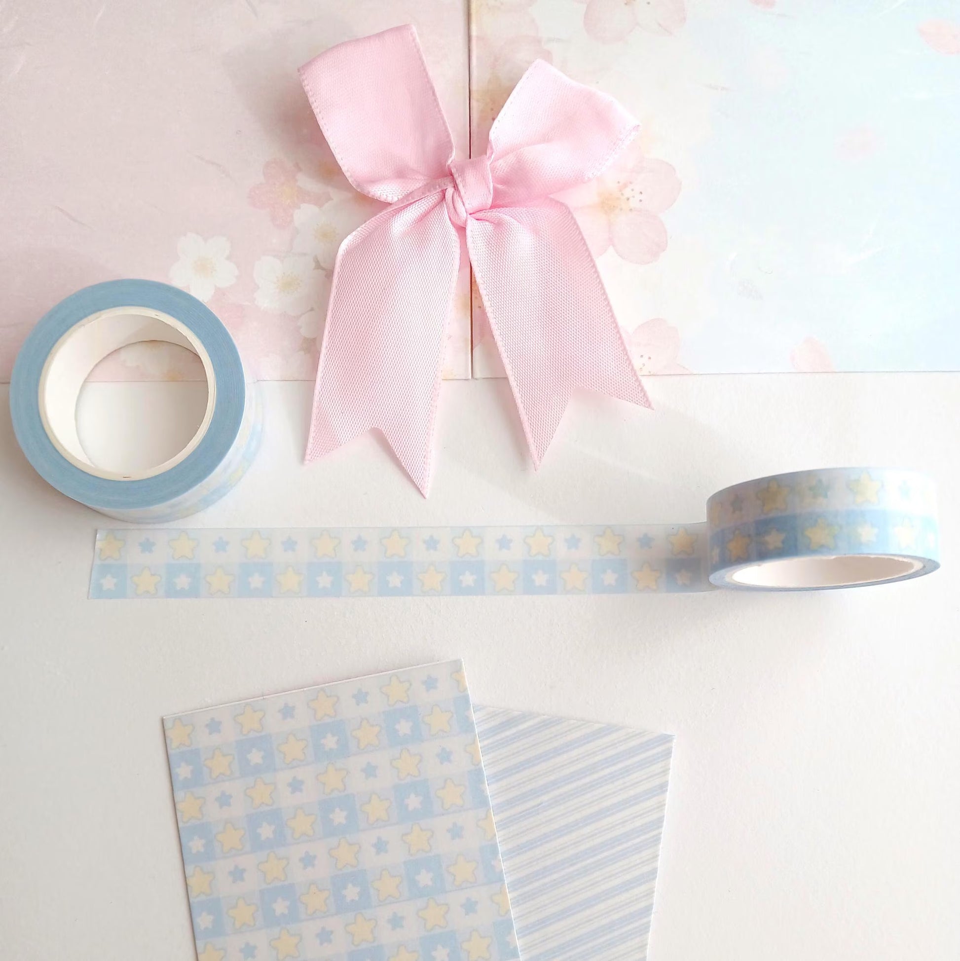 This washi pairs beautifully with the Blue Candy Stripe washi tape and its sister roll, Pink Star Checker.